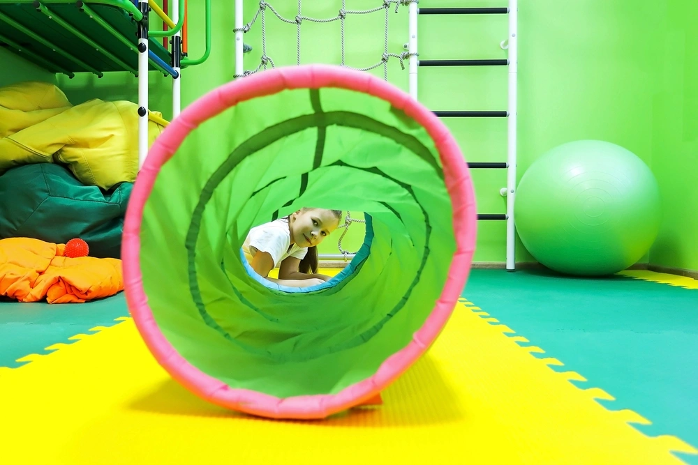 Our Sensory Gym provides a safe, engaging environment where children can move, explore, and learn through play. Specially designed to support sensory processing and motor development, the gym includes climbing structures, swings, and tactile activities that encourage exploration and skill-building. With therapy that feels like play, children gain confidence while working on important developmental goals.